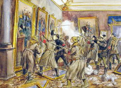 トロツキーが指揮するボリシェヴィキ派(赤衛隊)が武装蜂起を決行、10月25日にペトログラードを制圧してケレンスキーの臨時政府を打倒した。